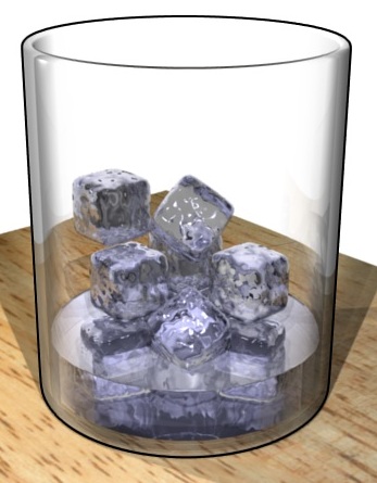 De l'eau solide (des glaçons) sont déposés dans un verre, et laissés à température ambiante.