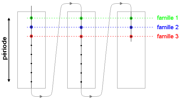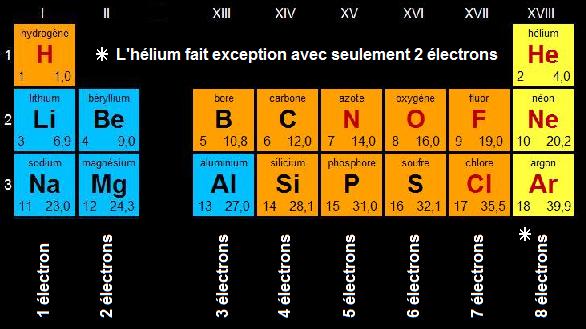 | A l'exception de l'hydrogène, les éléments de la première colonne appartiennent à la famille des alcalins. |