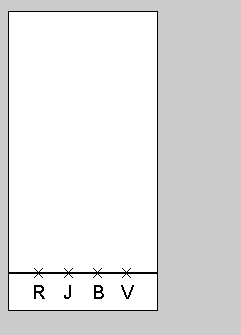 Sous la première croix, écrire la lettre R. Sous la deuxième J, la troisième B, et la dernière V. |