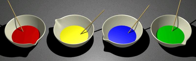 Le colorant rouge sur la croix marquée R, le jaune sur la