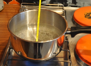 De l'eau liquide est placée dans une casserole et chauffée.