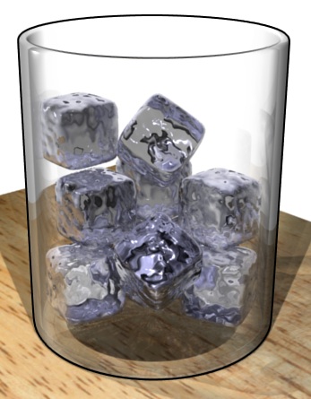 De l'eau solide (des glaçons) sont déposés dans un verre, et laissés à température ambiante.