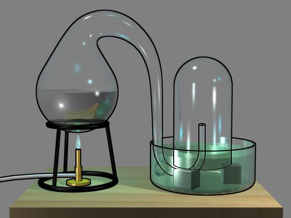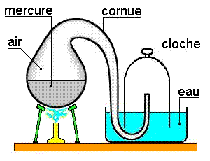 Une cornue contenant du mercure est reliée à une cloche contenant