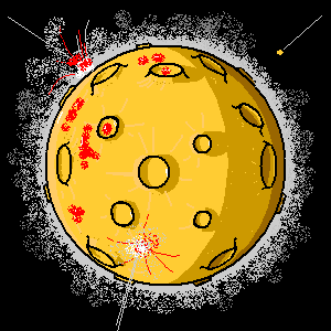 Il y a 4,5 milliards d'années le bombardement de la terre par des météorites crée de l'énergie qui fait fondre les roches et produit aussi du gaz. L'atmosphère est alors essentiellement composée de vapeur d'eau, et de dioxyde de carbone. Il contient aussi un peu de diazote. |