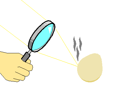 point, et ça chauffe. Avec la lumière du soleil et une loupe (qui est une lentille