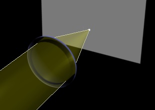 Nous pouvons observer la forme du faisceau lumineux qui a traversé la lentille,