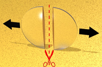 Découpons de manière virtuelle une lentille comme le montre le dessin ci-contre. |